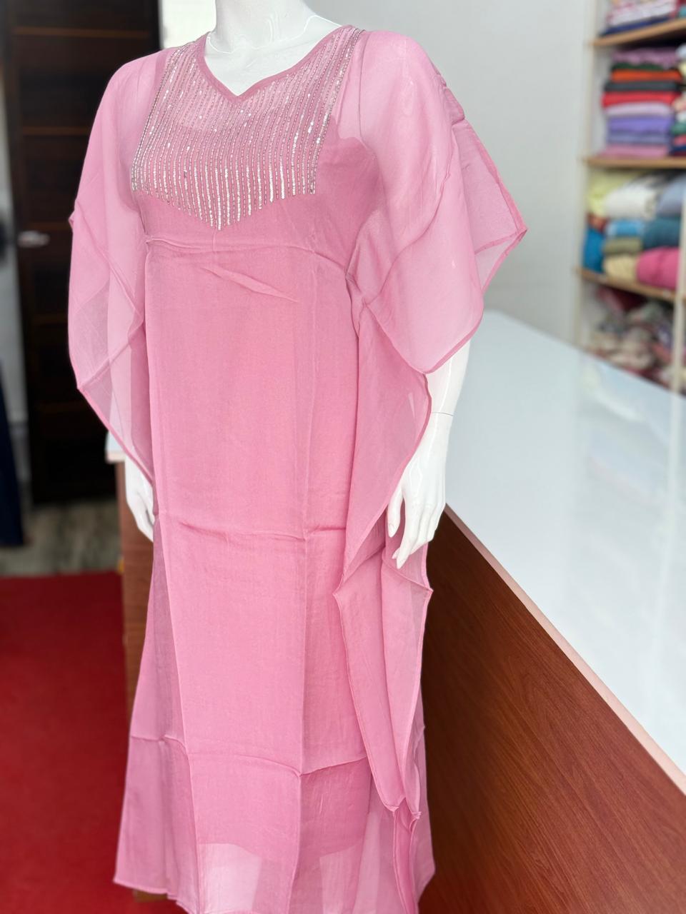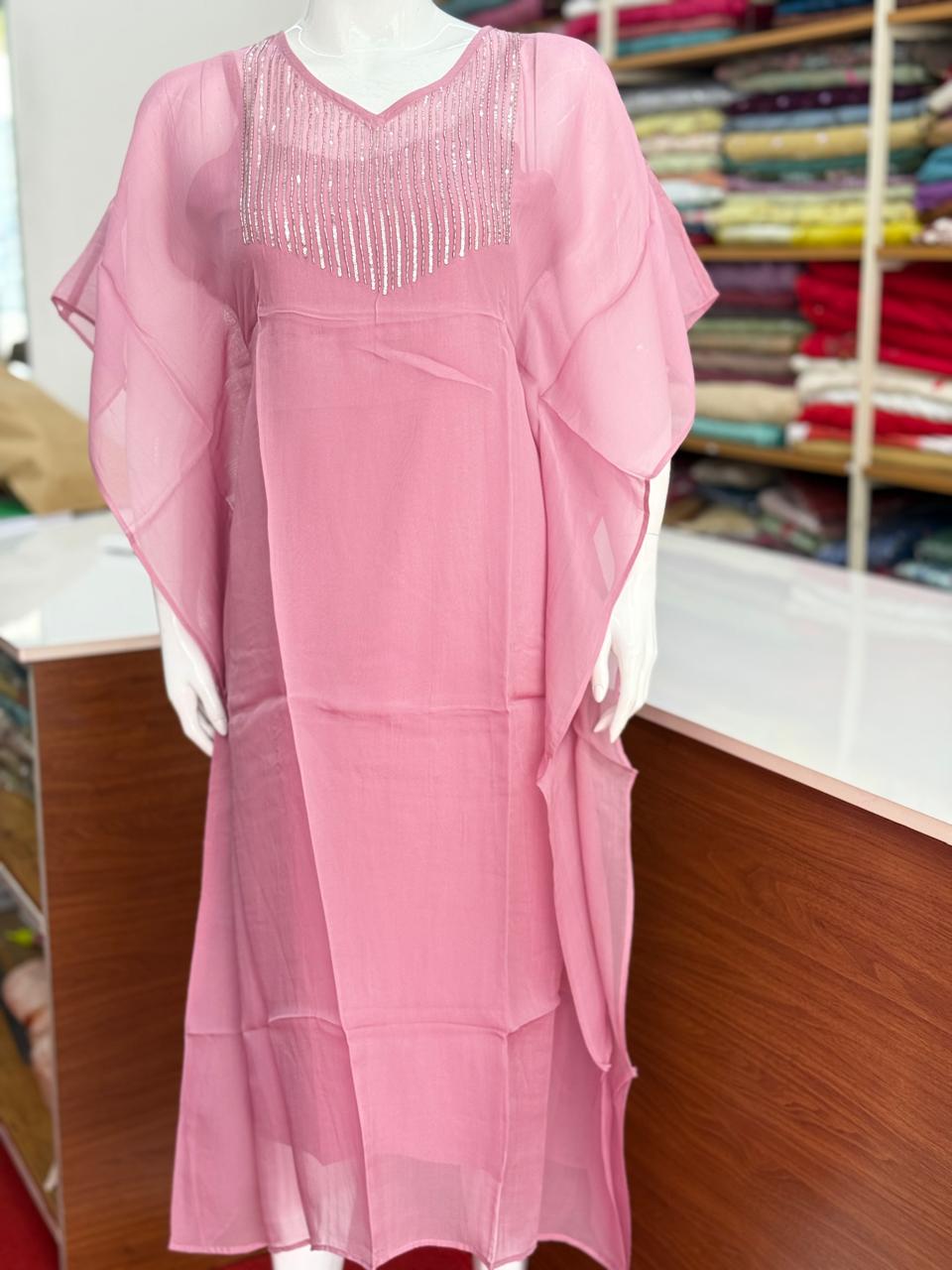 Women’s Kaftan with Sequence and Beads hand work – Code: KU 371 Pink